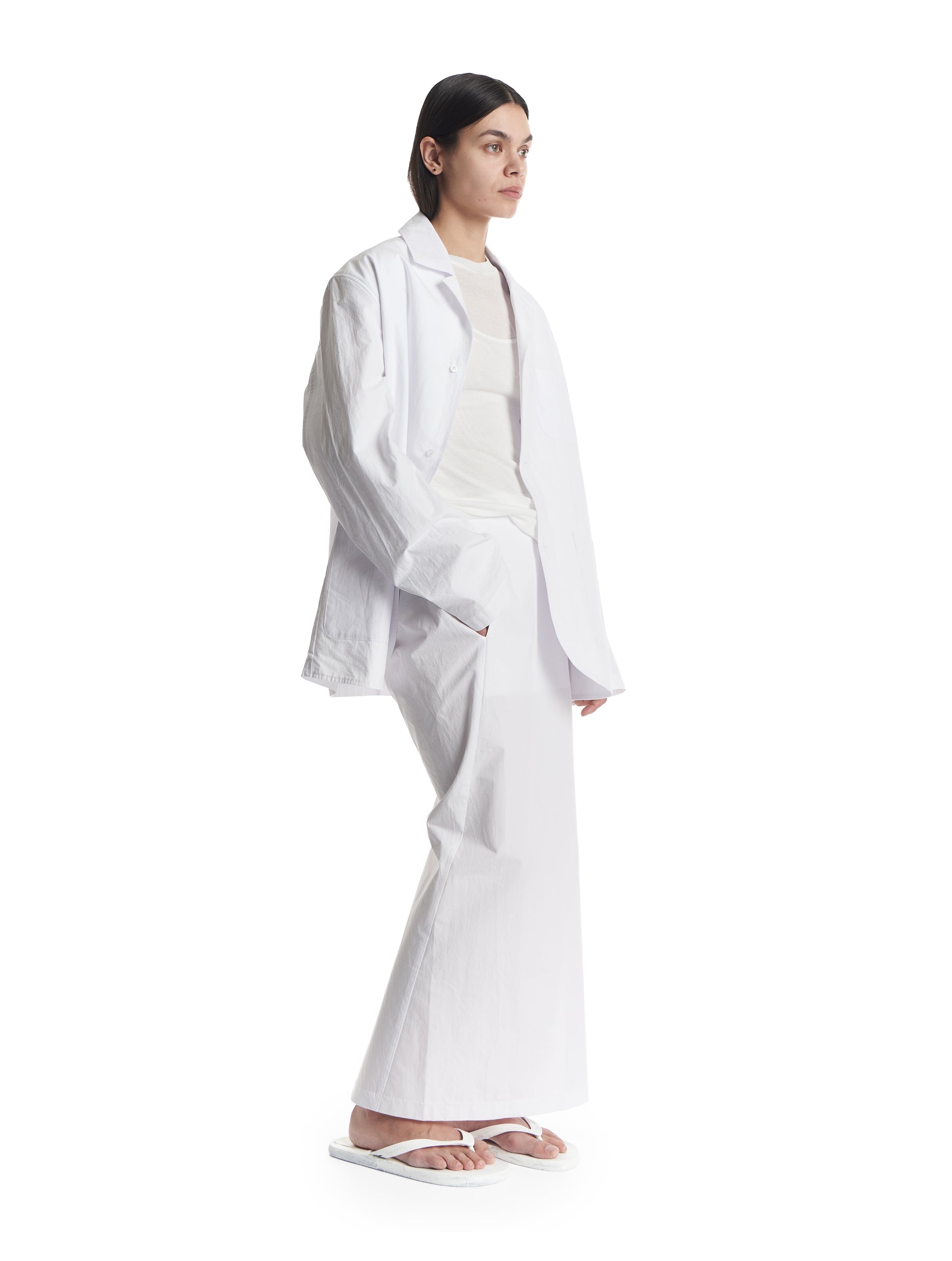This shirt has been brought to the New Year's collection from the regular GARDEROBE line with slight modifications. For the first time, the item is made of thin, flowing satin and has a classic stand-up collar. The extra wide cuffs, which make the sleeve even longer, deserve special mention. The cuffs are decorated with shell buttons, which allows you to change the degree of fit and adherence of the sleeve to the body. The piece is fastened with French elastic band loops and buttons.